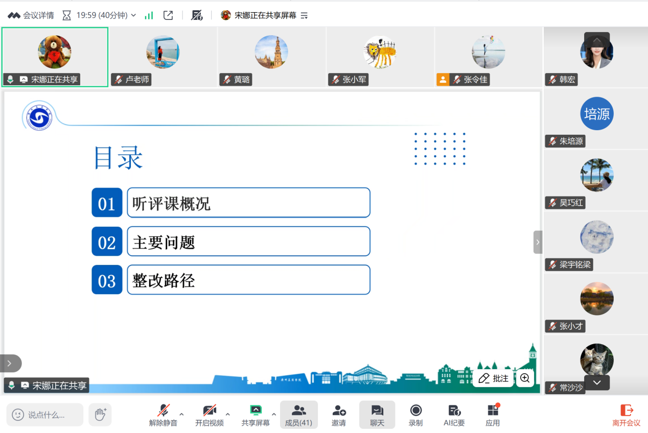 会议最后,各课程组长结合本组实际情况,就落实督导意见、优化教学设计、激发课堂活力、更新教学内容以及规范教学资料等方面分享了看法,提出了建设性意见。大家一致表示,将立即行动,把会议精神和整改要求传达到每一位任课教师,切实将压力转化为改进教学、追求卓越的内生动力。