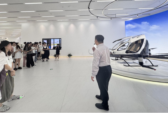 在本次研学活动的交流座谈会上,亿航智能公司代表卢永治先生向师生系统介绍了低空经济的现在与未来,以及该行业发展态势,并首度披露亿航智能公司的前沿技术突破与战略发展。在卢永治先生的专业介绍中,同学们了解到,亿航智能公司作为一家全球领先的城市空中交通科技企业,为多个行业领域提供各种自动驾驶飞行器产品和解决方案,针对同学们关注的低空经济就业前景,他也透露亿航正与相关部门联合制定岗位标准,预计未来五年将产生大量就业岗位需求。同学们在座谈会中目睹了现今低空经济领航企业的发展现状,同时也了解到亿航正推动低空经济“公交化”,深刻理解了“新质生产力”内涵,激发对智能交通、城市治理等领域的探索热情。