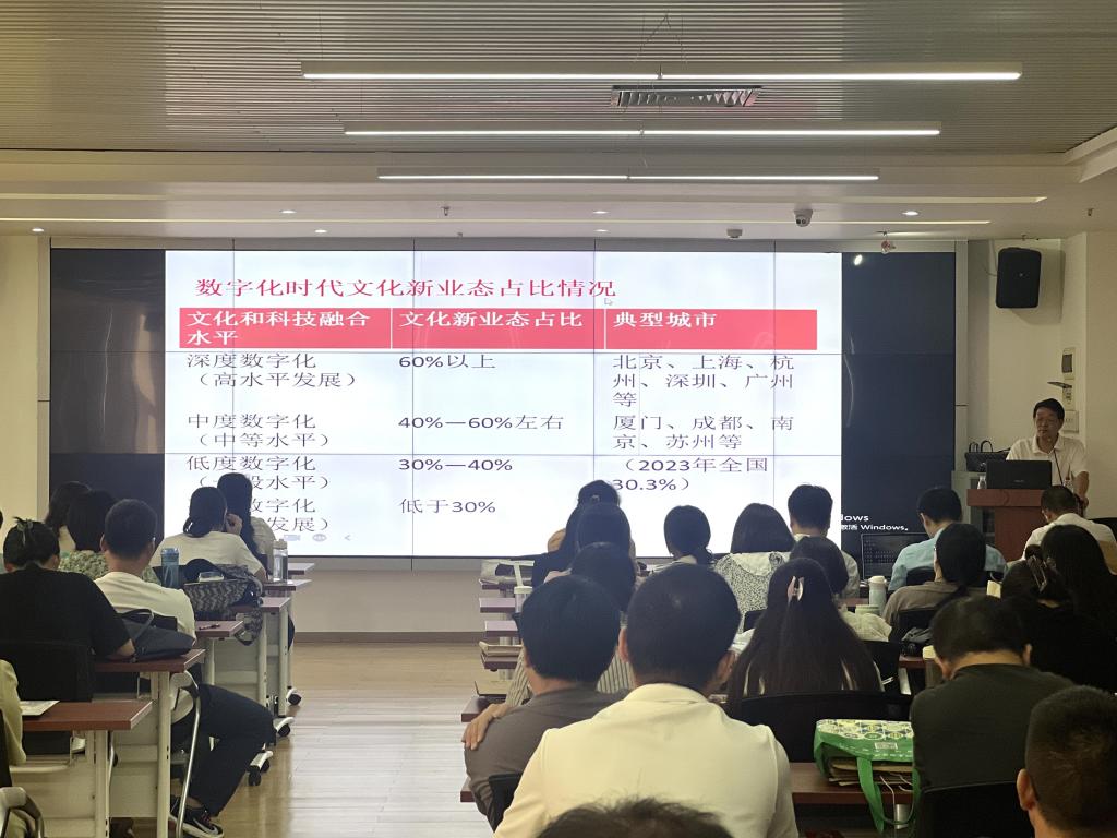 2024年6月20日下午,工商大讲堂2024年第十一期学术讲座在三水校区院部楼525会议室如期举行。该讲座由会计学院主办,邀请广东省社会科学院原党组成员、副院长温宪元二级研究员担任主讲嘉宾。讲座主题为“文化和科技融合的时代使命及未来趋势”。会计学院副院长高少慧博士主持讲座,会计学院百余名教师参加讲座。