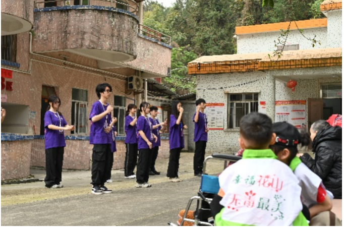 打扫结束后,我们志愿服务队9位同学为大家表演了“舞动手指、健康生活”的手语操。这个手语活动旨在通过手语操鼓励老年人积极参与,享受活动带来的乐趣和益处。最后我们和老人们进行一对一交流谈心,同时给老人家赠送了小礼物和水果等,大家都很开心,敬老院的工作人员表达了对同学们的感谢。