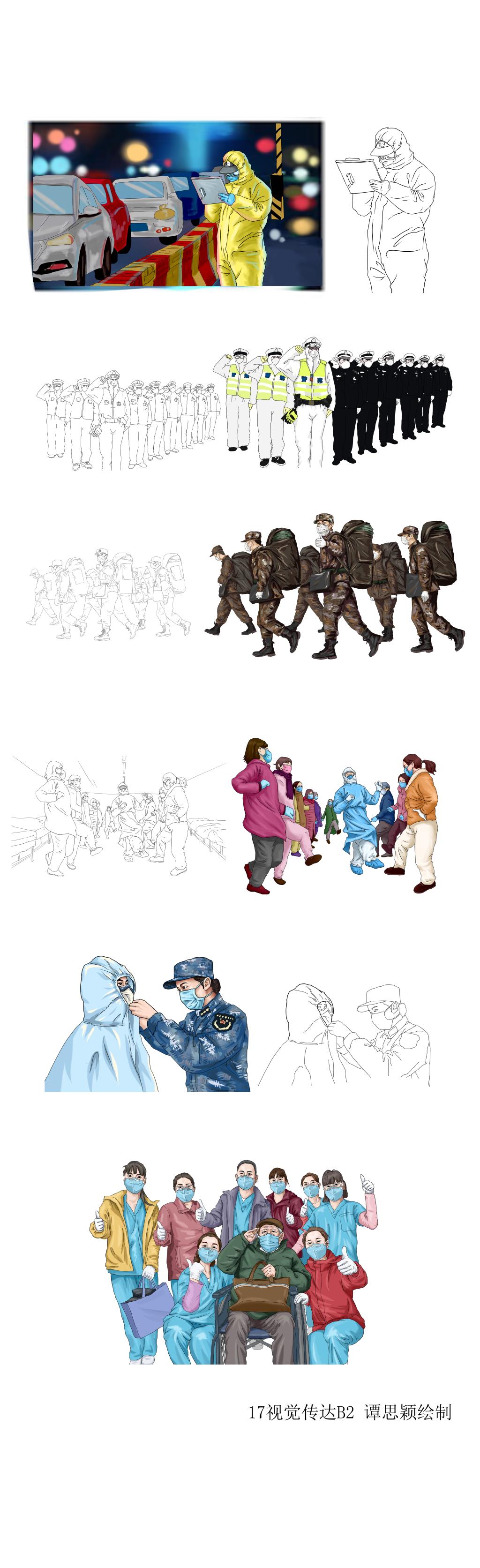 新冠疫情的到来,促使我们每一个人都参与进了这样的一场“战役”中。每天看着电视屏幕里的一个个感人事迹,泪水总是打湿眼眶。虽然,“躺在家里也是做贡献”,但是beat365在线体育官网登录入口美术设计系的老师和同学们也想奉献一份力量。那就是用自己手中的画笔,记录这个时期的感人事迹。参与《家国同心战疫情》的创作,不仅为社会做了贡献实现了自我价值,而且自己的设计能力、团队协作能力也得到了很好地锻炼。