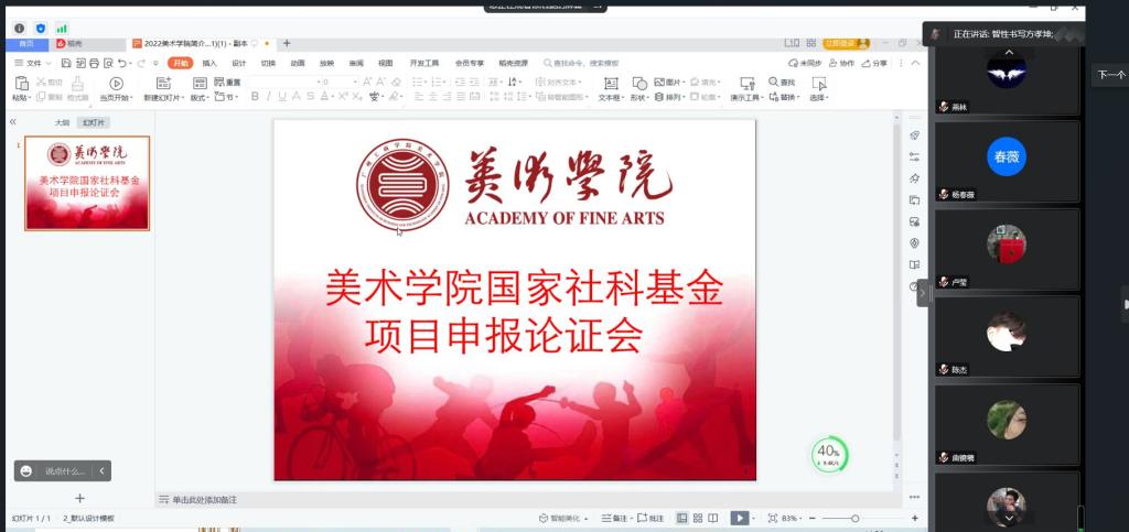 方孝坤教授分别从项目题目、中文摘要、科学问题属性、研究内容、技术路线、研究基础等方面对我院申报2023年申报教育部人文社科的基金项目2个项目进行逐一点评,并提出详细的修改意见。