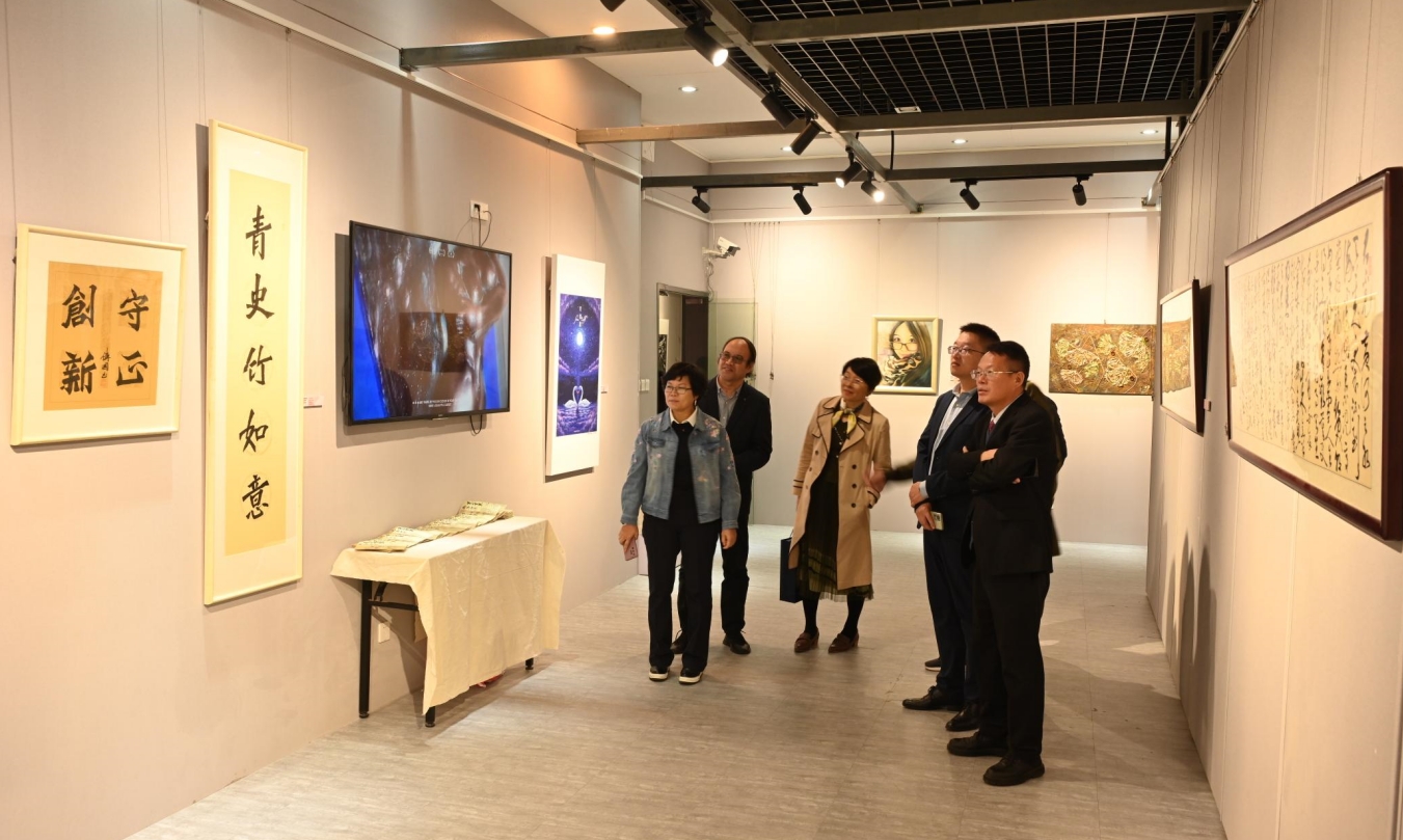 图2 学校领导一行观看教师艺术作品展展出的作品