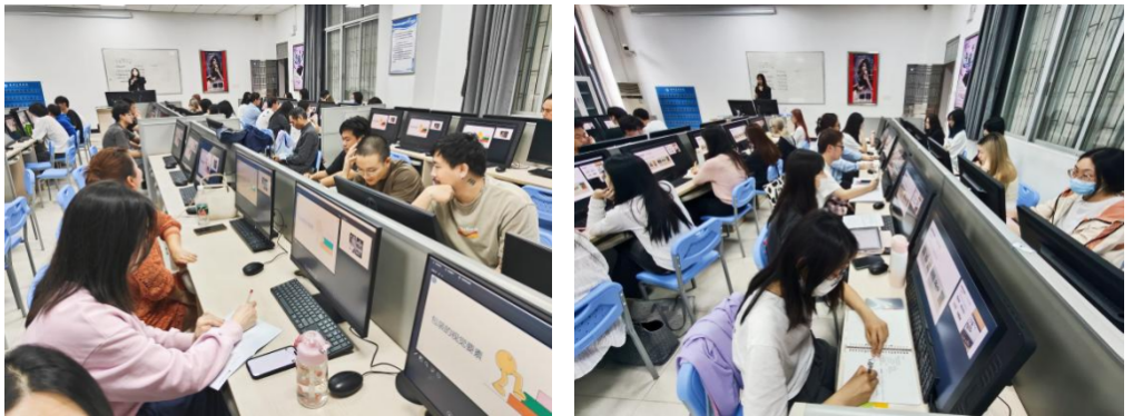课堂中曾老师围绕包装设计的核心理念,从设计原理到实践应用,层层递进,深入浅出地进行了讲解。不仅分享了包装设计的前沿理念和技巧,还通过实际案例,向师生们展示了如何将理论知识与实际操作相结合,创作出既具创意又实用的包装设计作品。学生们也展现出极高的学习热情,紧跟曾老师的授课节奏,认真听讲,仔细做笔记。