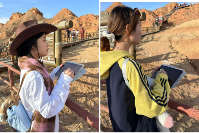 在参观过程中,学生们通过讲解了解到,张掖丹霞地貌的形成经历了亿万年的地质演变,是大自然鬼斧神工的杰作。这里的岩石层经过长期的风化和侵蚀,形成了奇特的柱状、塔状、峰状等地貌形态。每一块岩石、每一个山峰都仿佛讲述着一段古老的故事,让同学们对此产生了浓厚的兴趣。