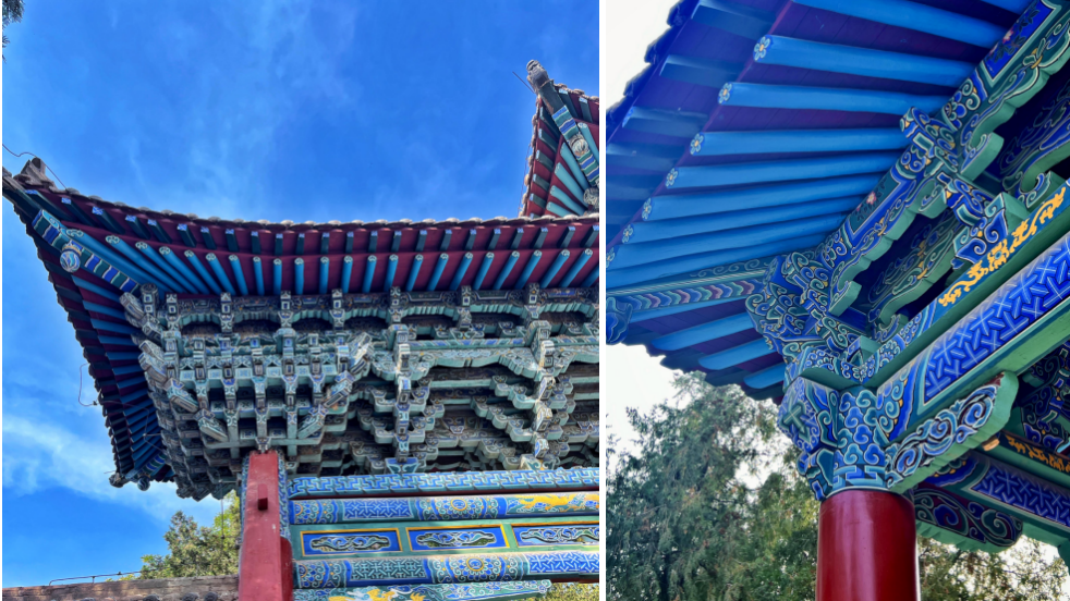 除了嘉峪关雄伟的建筑与壮阔的自然景观外,嘉峪关的建筑外部装饰着大量精美的图案及纹饰,这些色彩鲜艳富有趣味的图案与长城和戈壁形成鲜明的对比,同学们将自己的目光聚焦在一个个精美的纹饰之中,相信这些图案及纹饰能够为他们的创作提供了丰富的视觉素材和灵感来源。