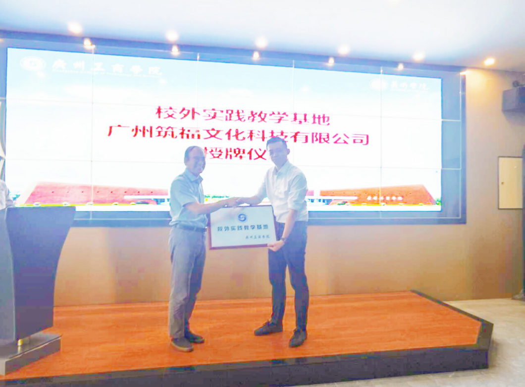 为了进一步强化学校与企业间的沟通与协作,推动学生实习工作的深入进行,促进资源的共享,构建一个质量提升的共同体,实现理论与实践相结合的共同成长,2024年11月14日美术学院与广州筑福科技文化公司于并隆重举行了校外实践教学基地揭牌仪式。美术学院院长徐浩艇、副院长郝孝华,广州筑福文化科技有限公司副总经理蒋斌等、项目经理曾雪清等参加仪式,美术学院全体师生出席活动。