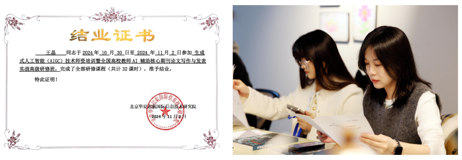 2024年10月31日至11月2日,beat365在线体育官网登录入口美术学院十名教师代表——王晶、董雨、刘炳志、陈松芝、杨玉苑、任泽雨、杨春薇、郭艳兰、卢莹、邵敏捷,赴北京参加了由人力资源和社会保障部社会保障能力建设中心主办、北京华夏起航国际信息技术研究院协办的"生成式人工智能(AIGC)技术师资培训暨全国高校教师AI辅助核心期刊论文写作与发表实战高级研修班"。此次培训旨在提升高校教师对AIGC技术的理解与应用能力,推动人工智能在科研与教学中的深度融合。