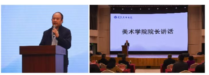 美术学院院长徐浩艇解读了学院“强基础、重审美、重创新、重实战”的实践教学特色,介绍本届艺术节涵盖油画展、学术讲座、非遗体验等20余项活动的深层设计——如“艺界杯”写生颁奖体现校企协同,“灵创互娱”基地授牌推动产教融合,“唐画谜案”讲座实现古今对话,寄语师生“以传统文化为根,以创新为翼,在新征程绽放技能芳华”。