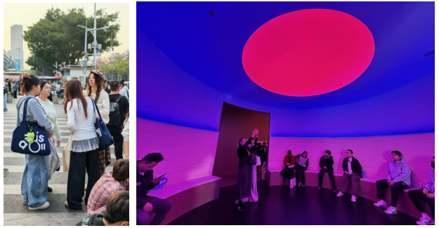 此次观展旨在让师生紧密对接行业最新动态,拓宽专业视野,激发创作灵感。设计周现场人头攒动,汇聚了来自全球20多个国家的上千家品牌与企业,集中展示了涵盖设计、文创、艺术、家居、高定、智能材料、户外景观及生活方式等全链品类的创新成果。面对超过45万人次的观展热潮,师生们深入各个展馆,重点考察了与空间营造、材料应用、可持续设计及智慧生活相关的展项与策展项目。