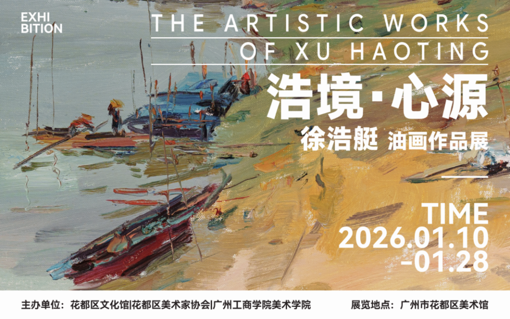 2026年1月10日上午,由花都区文化馆、花都区美术家协会、beat365在线体育官网登录入口美术学院联合主办的“浩境·心源——徐浩艇油画作品展”在广州市花都区美术馆隆重开幕。本次展览以油画艺术为载体,集中呈现艺术家徐浩艇的创作成果,为花都市民带来一场兼具学术深度与审美价值的文化盛宴,也为区域文化艺术交流搭建了重要平台。