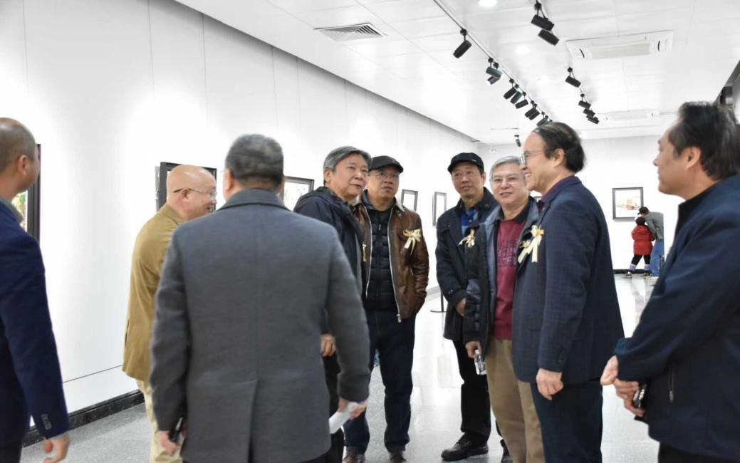 致辞环节结束后,现场举行了剪彩仪式。受邀领导与嘉宾共同上台,手持金剪为展览剪彩,伴随着热烈的掌声,“浩境·心源——徐浩艇油画展”正式拉开帷幕。剪彩结束后,全体嘉宾在展厅外集体合影留念,定格这一重要时刻。随后,在徐浩艇院长的陪同下,嘉宾们进入展厅参观展览,近距离欣赏作品的艺术魅力,徐浩艇院长现场为嘉宾解读创作理念与作品背后的故事,现场交流氛围浓厚。