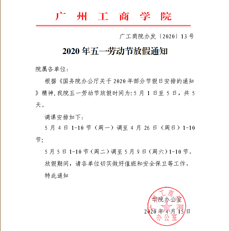 2020年五一劳动节放假通知