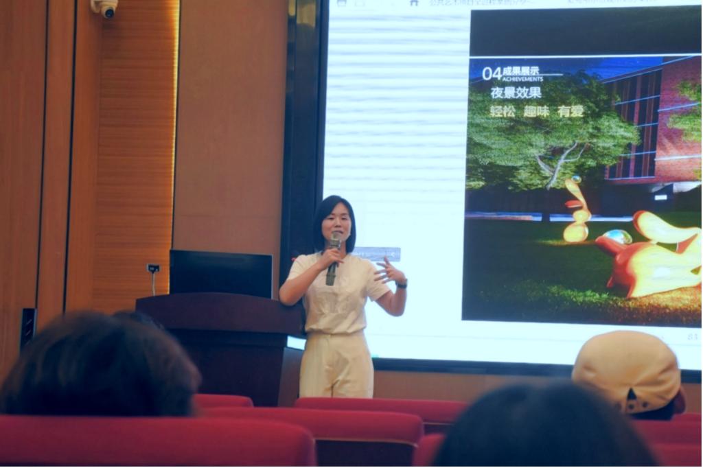 接着,何礼老师通过实际项目案例,全面介绍了公共艺术项目从初步概念到最终方案策划的全过程。她结合每个阶段的实际问题,详细解析了策划的关键环节,为学生们展示了完整的项目规划过程。