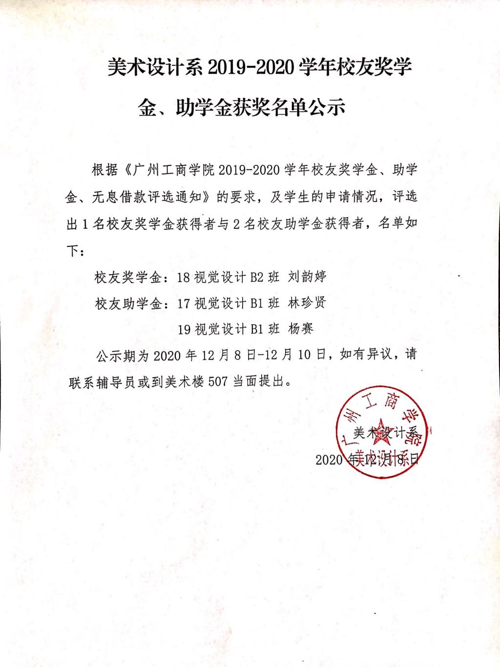 美术学院2019-2020学年校友奖学金、助学金获奖名单公示