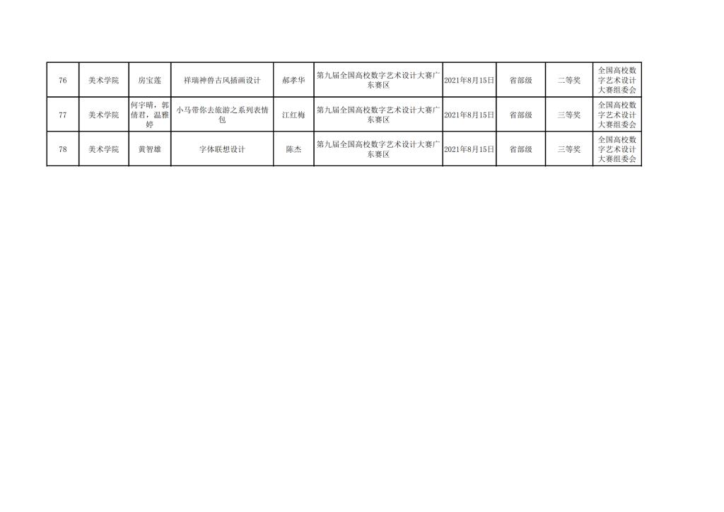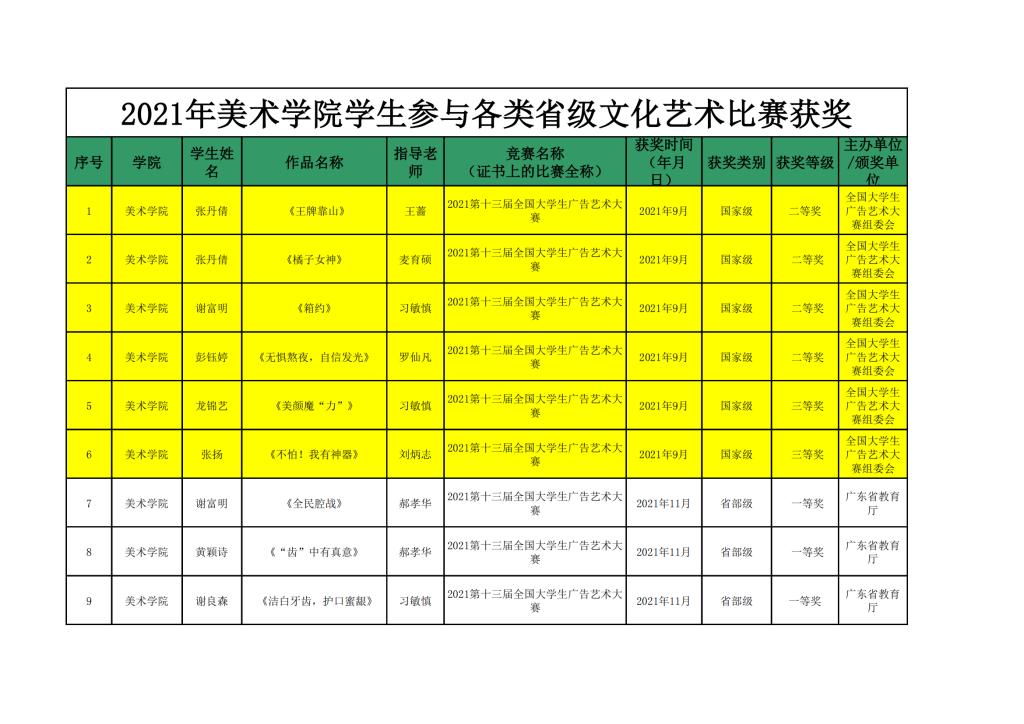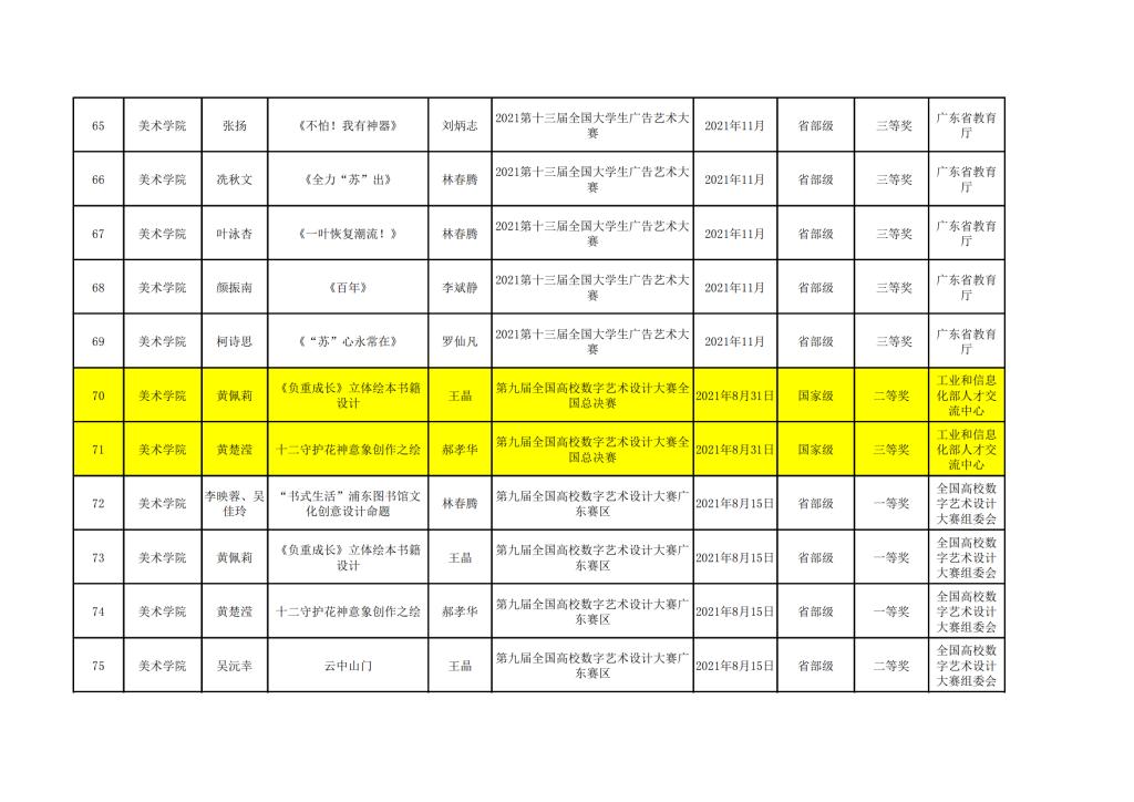2021年美术学院学生参与各类省级文化艺术比赛获奖