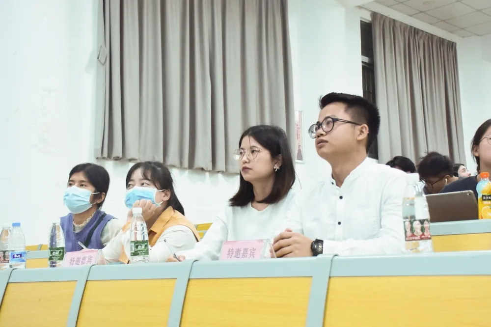 莅临本次总决赛的评委和嘉宾有:学工办主任孙音老师、美术学院团委书记丘庆达老师、党支部副书记林志荣老师、辅导员:范许哲老师、刘丹丹老师、黄健星老师、曾淼林老师、主席团:陈雪怡师姐、何天佑师兄、陈珊珊师姐、洪碧冰师姐、辩论队:陈鋆师姐、余永婷师姐、张易灏镁师姐、李立佳师兄、巫文迪师兄。