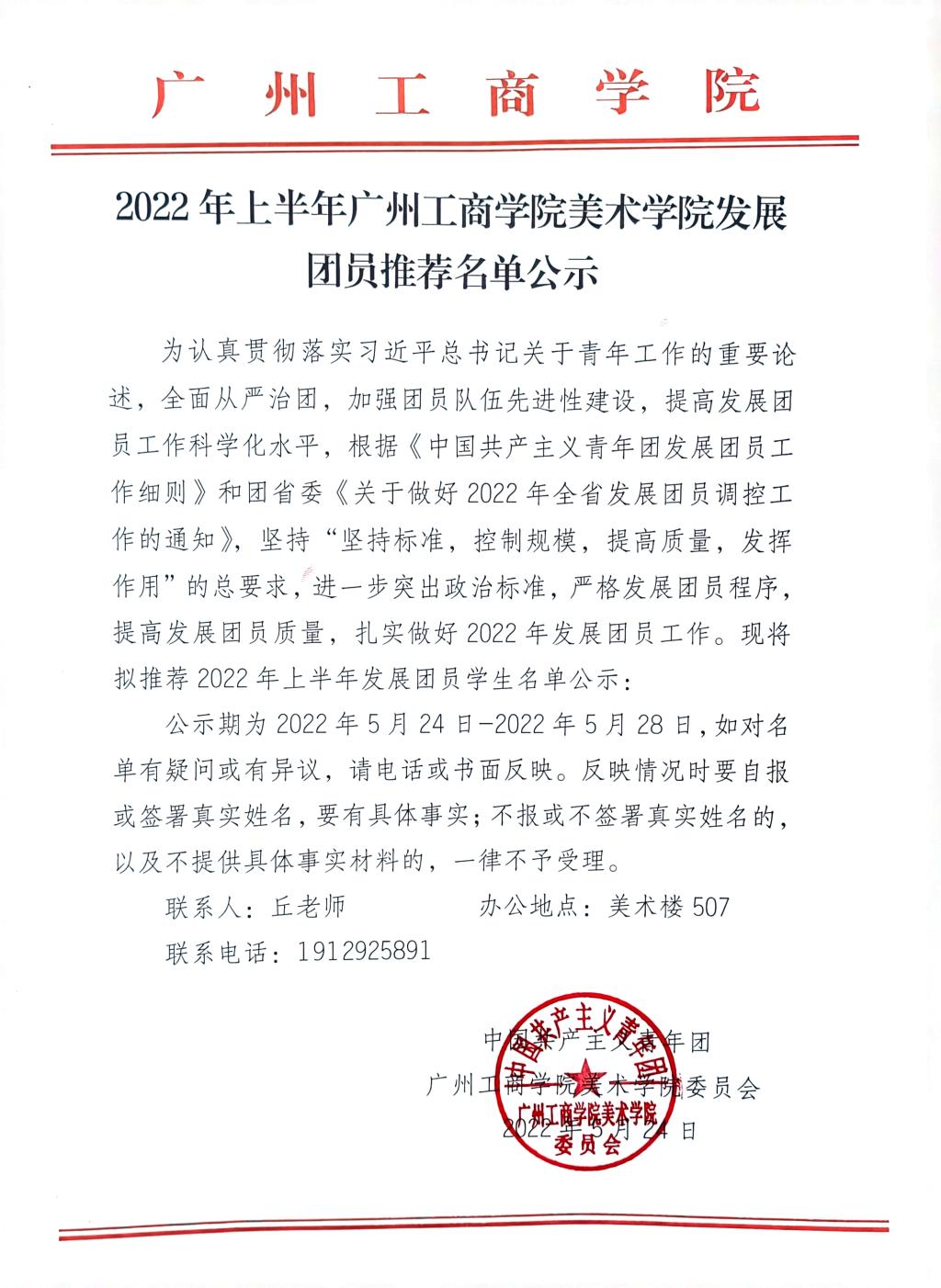2022年上半年beat365在线体育官网登录入口美术学院发展团员推荐名单公示