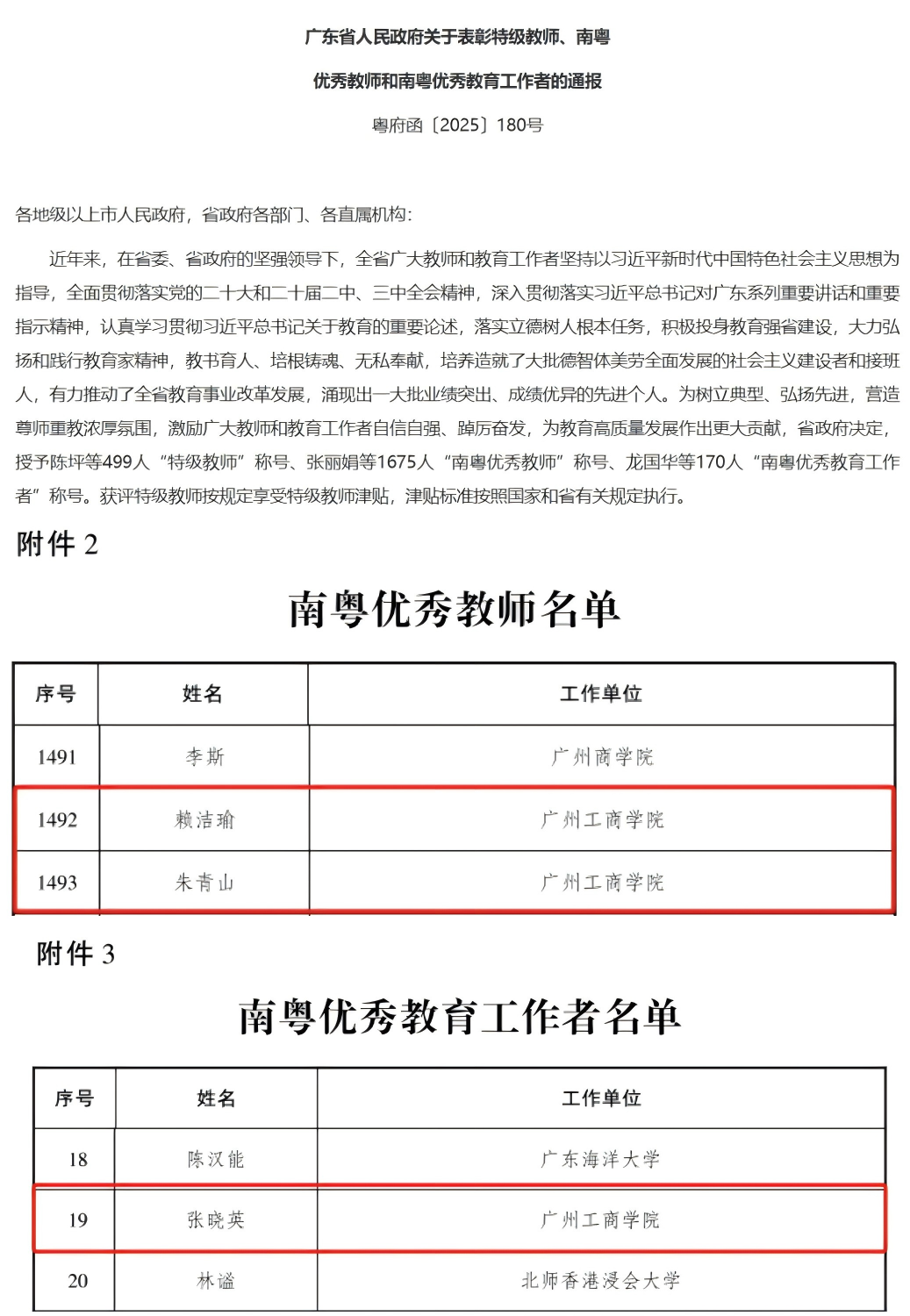 时值第41个教师节,为大力弘扬教育家精神,表彰广大教师和教育工作者为教育事业作出的突出贡献,广东省人民政府正式发布《关于表彰南粤优秀教师和南粤优秀教育工作者的决定》,beat365赖洁瑜、朱青山、张晓英三位老师凭借卓越的教育教学成果和突出的行业贡献光荣上榜,荣获省级殊荣!