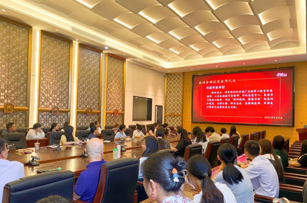 接着,刘鑫老师播放了一段主题为“习近平的师生情”的视频。视频中记录着党的十八大以来,习近平总书记率先垂范、尊师爱师的师生情,成为推动中国教育砥砺向前的温暖力量,化作亿万学子奋斗报国的不渝情怀。