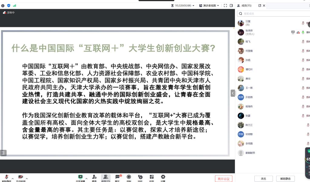 在交流会上,张序序老师以提高团队参赛能力为主题,以项目选育和师资指导为主要方向对指导教师容易忽视的情况和需要重视的关键问题进行了分享和深入探讨。在项目选育方面,培训强调了项目选择的合理性和创新性。首先,选择具有市场前景、符合社会需求的项目是至关重要的。一个优秀的项目应该具备足够的创新性和独特性,能够区别于其他同类产品或服务。同时,项目还需要具备可行性和落地性,能够在实际操作中得以实现。要选择有市场前景的项目,就需要对市场进行深入调研和研究,了解消费者的需求和趋势。同时,项目应该符合社会需求,能够解决社会问题或满足社会需求。通过选择这样的项目,团队可以更好地展示自己的创意和能力,提高参赛的成功率。