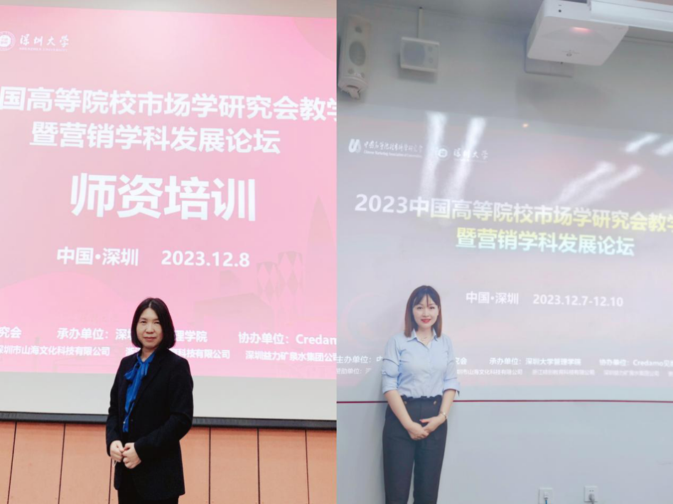 2023年12月8日至10日期间,市场营销专业周桂凤老师和曹明香老师参加了在深圳大学举行的“2023中国高等院校市场学研究会教学年会暨营销学科发展论坛”。本次会议由中国高等院校市场学研究会主办,深圳大学管理学院承办。本次年会主题为“高质量发展背景下营销人才培养与学科建设”。浙江工商大学校长王永贵教授,东北财经大学党委常委/副校长汪旭晖教授、香港城市大学/深圳大学荣休教授周南教授,华东师范大学亚欧商学院中方院长、上海国际首席技术官学院执行院长何佳讯教授,上海外国语大学国际工商管理学院院长、脑机协同信息行为教育部重点实验室主任潘煜教授,以及香港中文大学商学院市场学博士项目主任戴先炽副教授先后发表主题演讲。来自166所高校的300多名市场营销专业负责人及骨干教师与会,一起探讨经济高质量发展背景下营销人才培养与营销学科建设相关议题,分享教学经验,共同推动全国市场营销专业建设。
