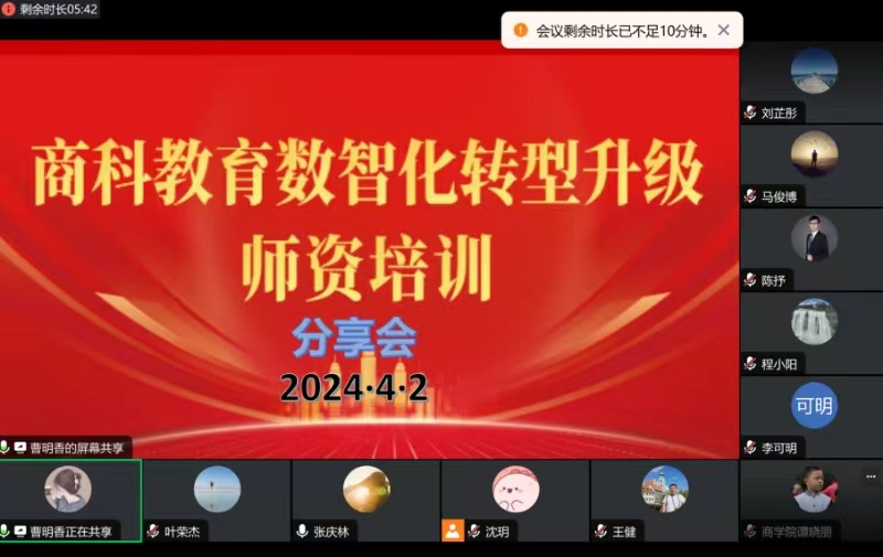 2024年4月2日,市场营销教研室召开商科教育数智化转型升级师资培训分享会,本次分享会共有市场营销教研室的53位老师参加,会议由市场营销教研室副主任曹明香主持。