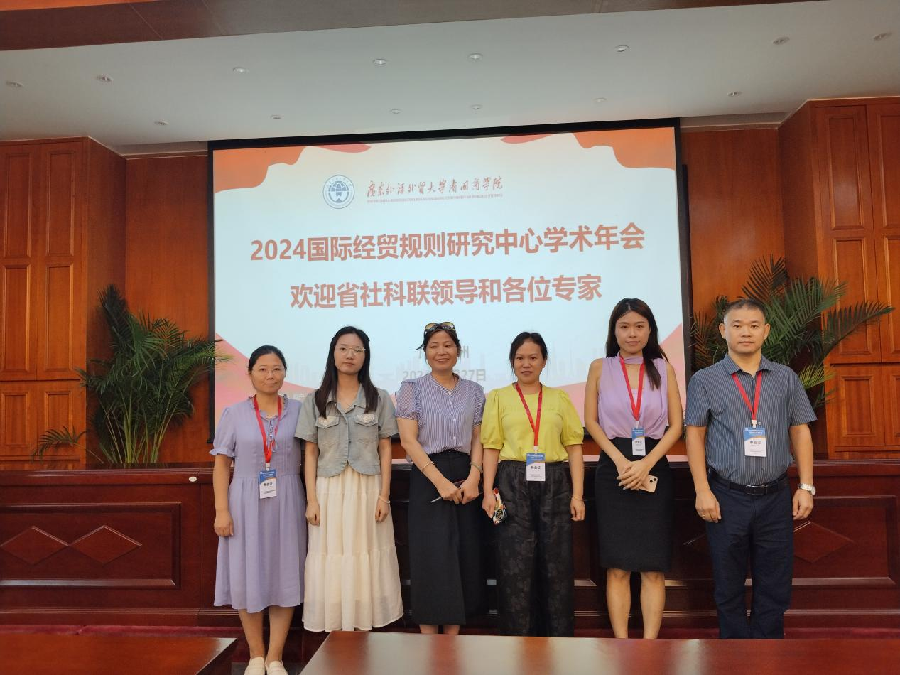 2024年9月27日,beat365在线体育官网登录入口商学院国际经济与贸易专业教师团队应邀参加了在广东外语外贸大学南国商学院国际会议厅举办的“2024国际经贸规则研究中心学术年会”。此次年会以“中国经济高质量发展与国际经济贸易新格局、新趋势、新规则”为主题,旨在贯彻落实党的二十大精神和习近平总书记考察广东的重要讲话精神,进一步推进高水平对外开放,稳步扩大规则、规制、管理、标准等制度型开放,为国内外从事国际贸易规则研究的专家学者、业界人士搭建学术交流与分享的平台。