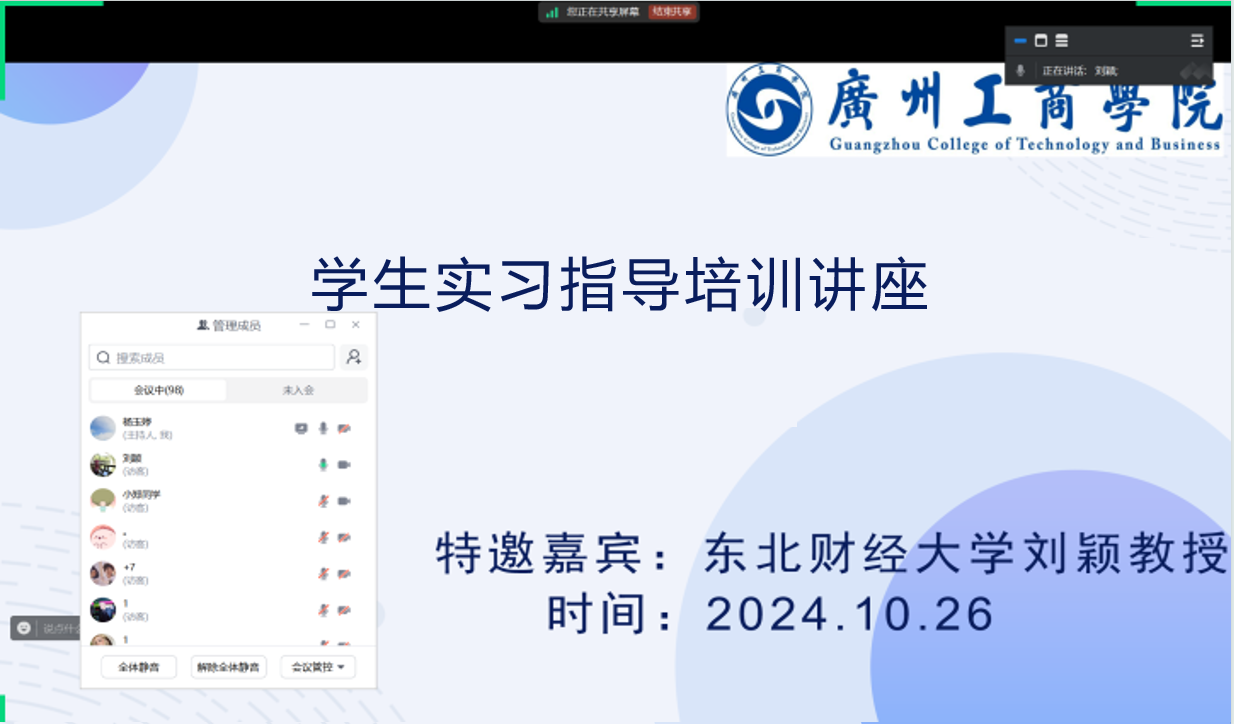 10月26日,为提高商学院学生实习质量与效果,为学生们的职业发展奠定坚实基础,商学院邀请了来自东北财经大学刘颖教授进行学生实习指导培训讲座。