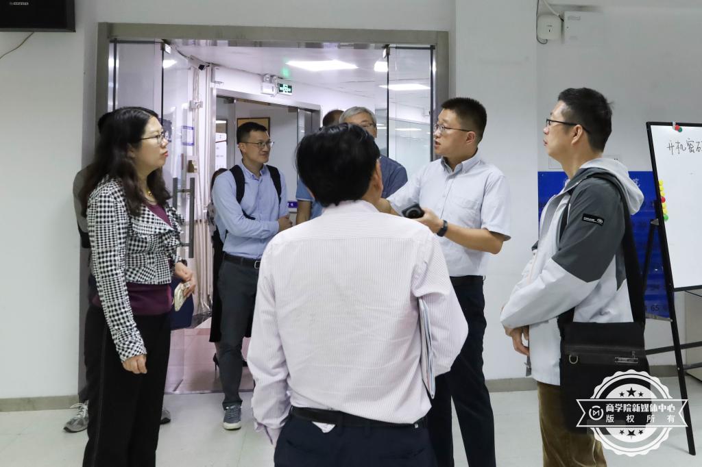 会后,商学院党委书记、院长林波引导佛山大学经济贸易学院领导班子一行参观商学院实验室,介绍商学院实验室建设情况,听取对方关于实验室建设的建议。