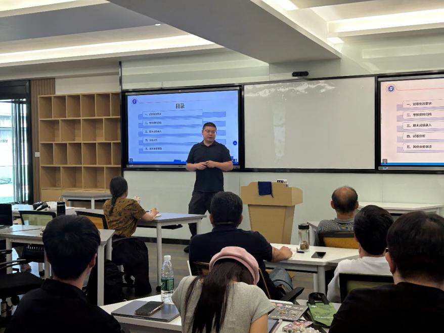 袁暄懿老师强调期末试卷批改需统一标准、规范痕迹,明确课程考核资料的归档清单、流程及保管要求,并按时准确录入成绩。林永瑜老师则针对实训课程,明确实训指导书、实训报告及优秀报告的归档要求,确保实践教学资料完整规范。