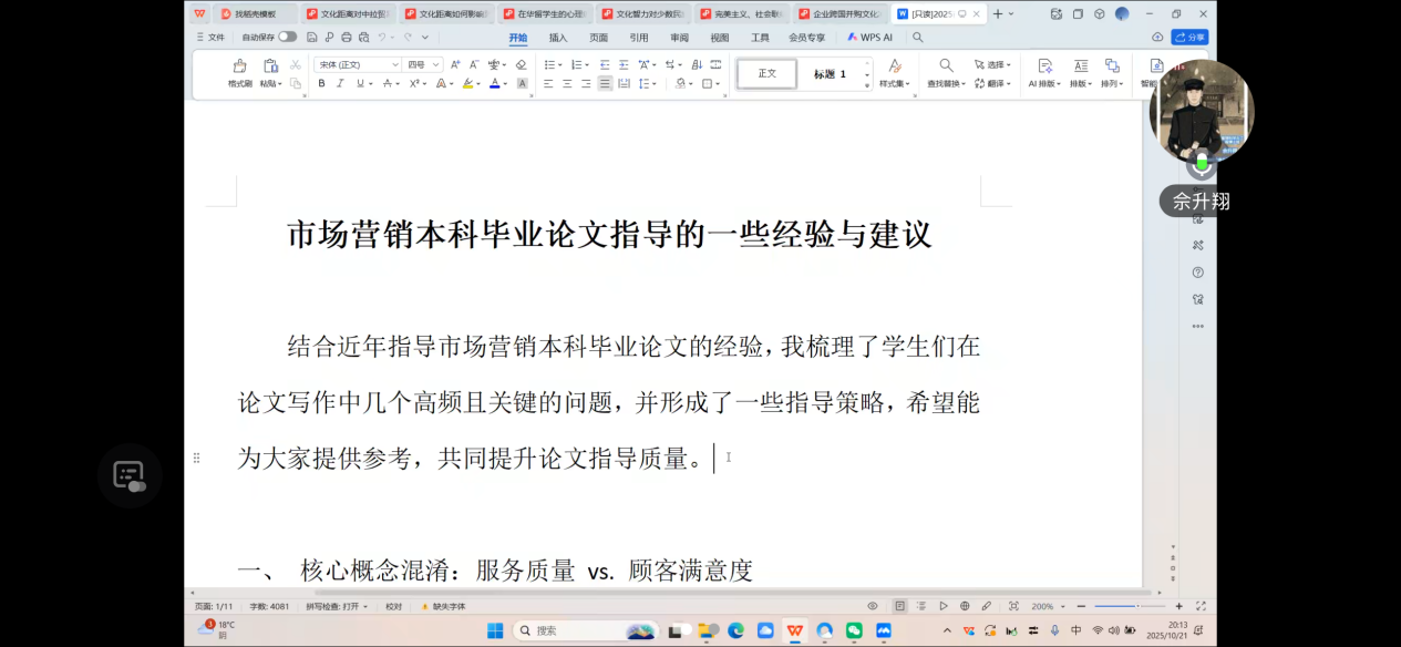 为全面规范2026届本科毕业论文指导流程,提升论文指导质量,明确各阶段工作要求,近日,商学院市场营销教研室专为全体论文指导老师召开2026届本科毕业论文指导工作启动会议。会议聚焦论文指导关键环节,邀请多位学术专家开展专题授课,为后续论文指导工作提供了系统的方法论支撑与清晰的行动指引,助力打造高质量学术成果。