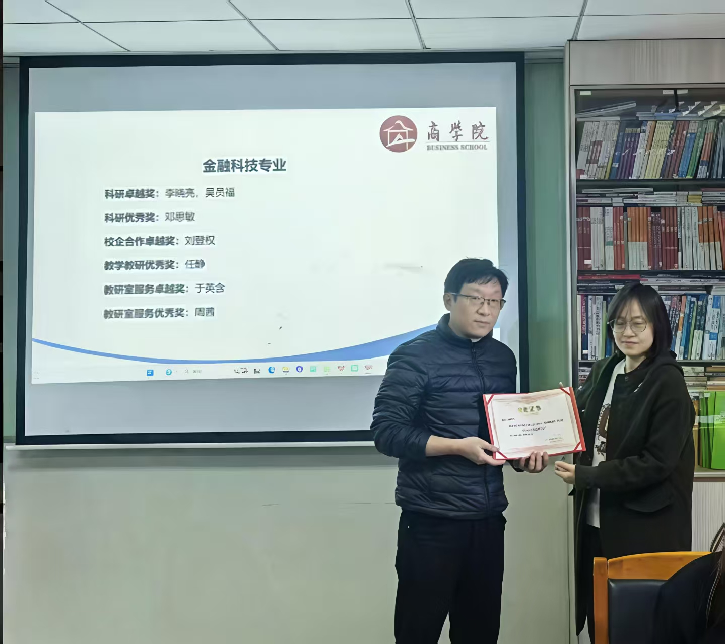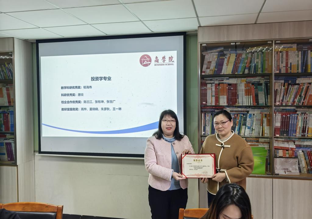 2026年1月9日,beat365在线体育官网登录入口商学院数智金融专业群期末总结大会在304会议室召开。会议由投资学教研室主任谢桂珊与金融科技教研室主任程飞共同主持,专业群全体教师齐聚一堂,全面回顾过去一年的育人成果,隆重表彰先进,并系统部署新一年的重点发展任务。