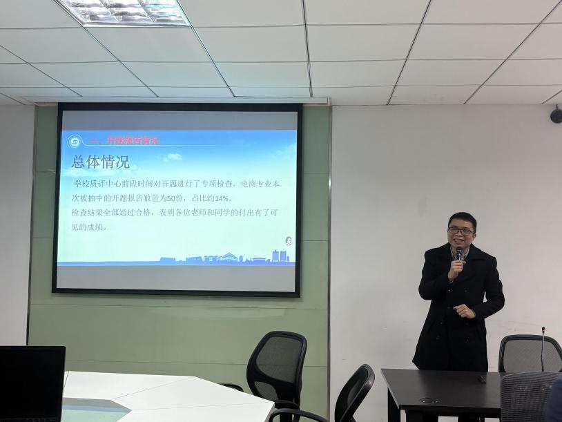 随后,毕业论文工作负责人钟康沛老师对新学期电子商务专业毕业论文各项工作进行了具体安排,明确相关推进节点与工作要求,为毕业论文工作规范、有序开展奠定基础。最后,教研室副主任刘鑫老师就新学期开学第0周各项准备工作作出部署,明确要求做好试卷检查核验,同时组织全体教师开展磨课工作,夯实教学基础,确保新学期教学工作平稳有序启动。
