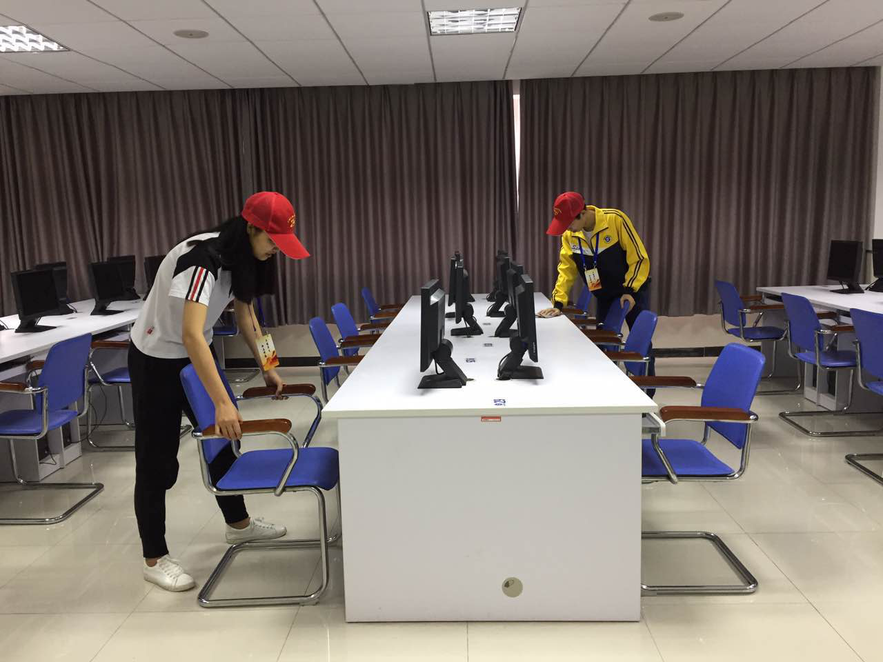 活动伊始,同学们都怀揣认真负责的态度和高昂的热情,在一番商讨分工之后便很快地投入到清洁工作中。扫地的同学,细致认真地打扫每一个角落,捡拾废纸片扫除灰尘;拖地的同学,全神贯注地清理地板上的污垢,豆大的汗珠滴落也浑然不知,反而乐在其中;擦桌子的同学,一次又一次不厌其烦地擦拭着。他们分工明确,有条不紊地对课室和实训室的电脑进行全方位的清洁;他们细心认真,不放过每一处的污垢。