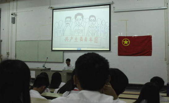 活动邀请了贺佳乐老师和各辅导员、经贸系各团学的干事干部以及各班的团支书作为嘉宾参与活动。由贺佳乐老师的讲话为我们揭开活动的序幕,其中贺佳乐老师更是为我们阐明了共青团的地位以及责任。中国共产主义青年团是党的后备军,是为了更好的培养优秀的人才给党,所以想要成为党员就先要是一位优秀的团员。贺佳乐老师也提到了习近平总书记在第十八届七中全会上和近期的一些讲话,都在一直强调共青团的力量。因为我们是党吸收更多新鲜血液的前提和力量,也是国家的希望。