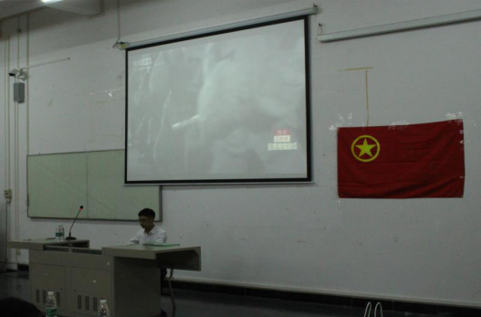 继贺佳乐老师的讲话过后就是直接的视觉冲击,开讲视频《人民的民义中截取的片段引起了在场同学的共鸣,随着视频回到了祖国生死存亡艰苦奋战的时刻;而第二个观看关于习近平总书记在中国政法大学的讲话视频,则让同学们感受到了国家对青少年的重视和关爱;第三个视频就是向我们展示了共青团的成长历程,让同学们也感同身受。