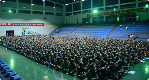 新生席地而坐认真听讲