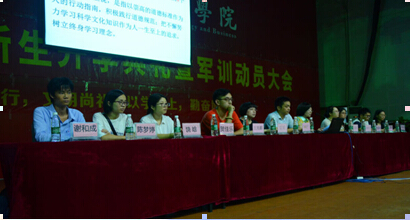 为深入践行学校“崇德学,尚五进”的思想精神;为丰富校园文化,增强我系的思想道德建设,促进同学们树立正确的人生观、价值观。2016年9月8日晚19:00,由经济贸易系主办,由经济贸易系团总支承办的2016级新生入学教育讲座,在花都校区体育馆一楼隆重举行。经济贸易系主任易露霞教授,经济贸易系副主任马超平老师,以及经济贸易系学工组所有辅导员出席会场。