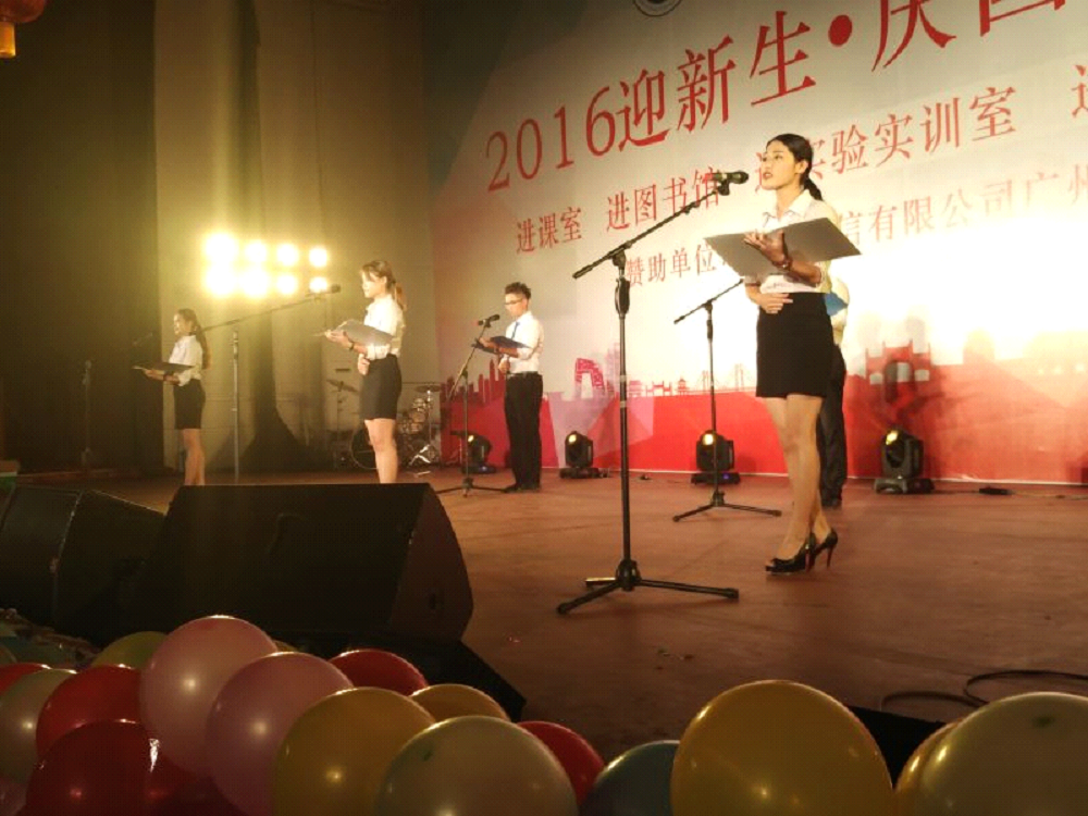 2016年9月28日晚上,迎新生庆国庆文艺晚会分别于三水校区田径场和花都校区体育馆举办。院长邝邦洪,党委书记兼副院长钟伟强,副院长乔丽媛、吴宏岳、朱特威等院领导与10000多名师生出席了本次活动。