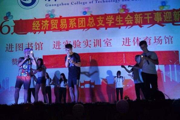 2016年10月23日晚上7点经济贸易系团总支学生会新干事迎新晚会在花都校区体育馆展开。