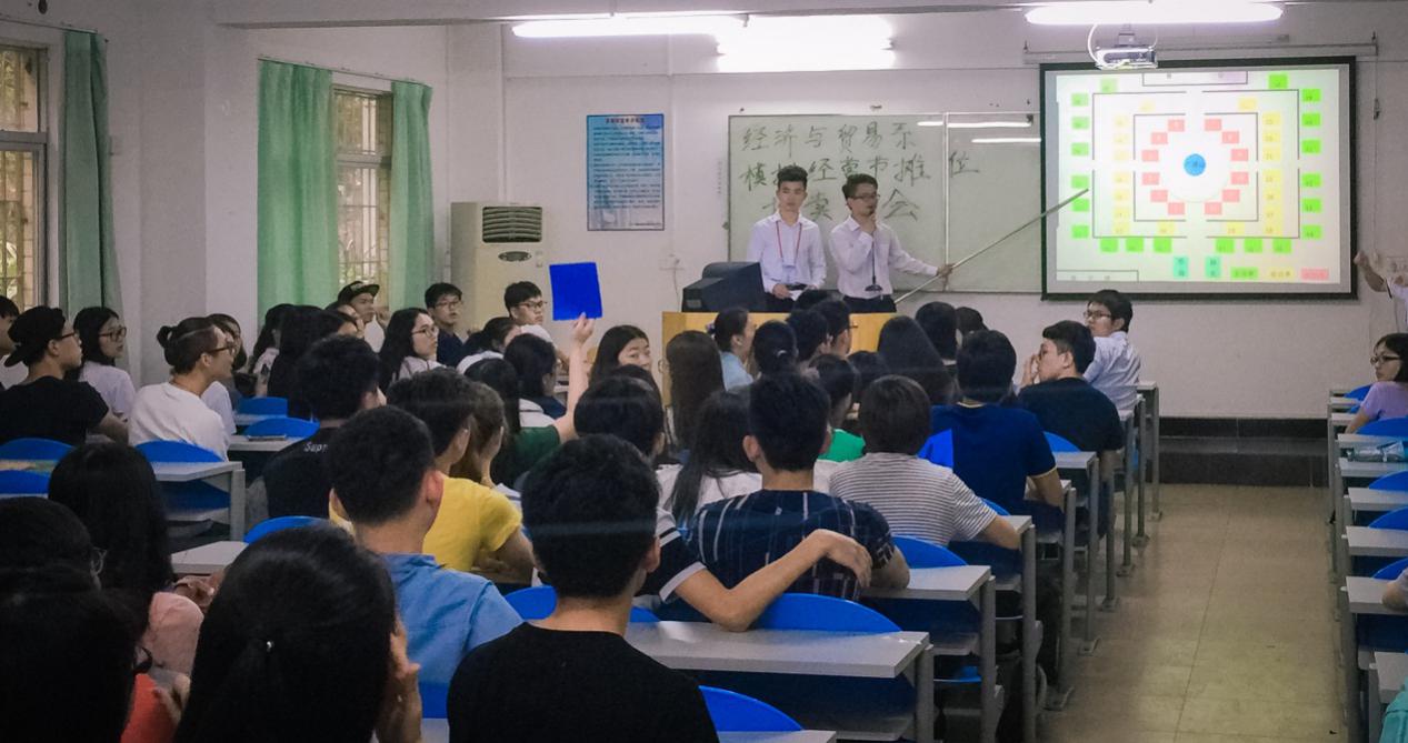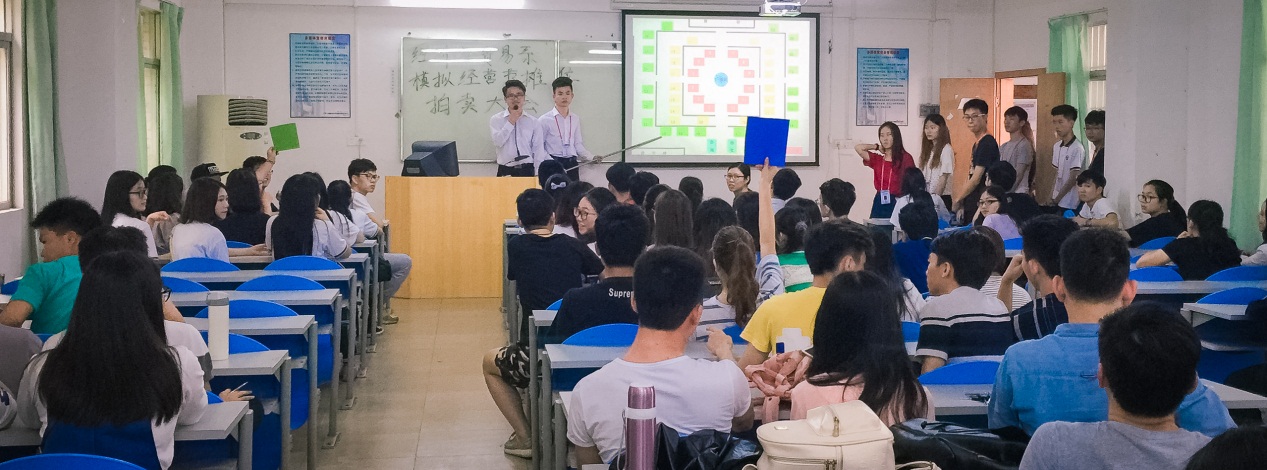 经济与贸易系“模拟经营节”积极响应“大众创业、万众创新”精神的号召,结合我院邝邦洪院长提出的“以德为行,以学为上”教育思想,促进我院学生积极践行“五进”之“进实验实训室”活动,让我院大学生们全面感受创业流程。“摊位拍卖会”是每届“模拟经营节”的开端,不仅能让学生从更深层次适应市场、适应社会,还能把创业、创新的氛围提前预热起来,达到良好的教学实践效果。