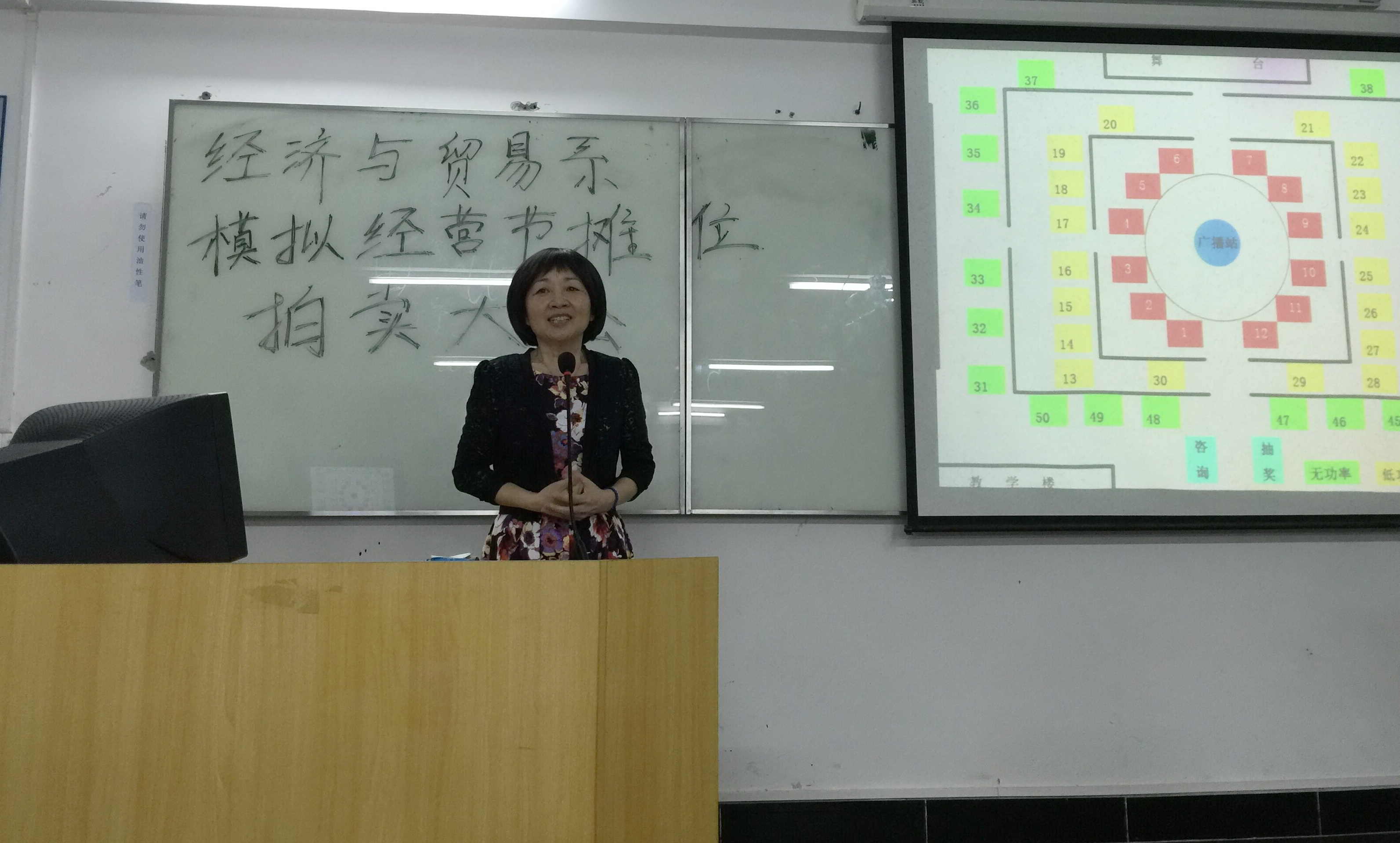 2016年4月26日16:30,beat365在线体育官网登录入口经济与贸易系第十三届“模拟经营节”摊位拍卖大会在花都校区外语楼103课室正式召开。本次拍卖会,我们很荣幸地邀请到了经贸系主任易露霞教授、副主任李习纯副教授、副主任马超平老师,以及经贸系四位辅导员老师到达现场给我们指导工作。