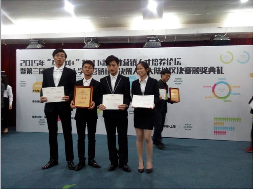 10月30日上午,beat3655支代表队参加大陆地区本科组总决赛,与其他40多支本科院校参赛队伍同场竞技,经过5轮角逐,参赛选手精心布局,步步为营,运用娴熟的市场营销知识,经过缜密的市场调查和科学的需求预测,最终从众多参赛队伍中脱颖而出,beat3655支队伍分获第一组第1名,第二组第1、2名、第三组第1、2名。下午,beat365获得小组第一的“五希”、“奔盈”、“智联”3支队伍会同其他6个小组第1名共9支队伍参加冠军争霸赛,再经5轮角逐,最终beat365“五希”团队荣获大陆地区总决赛冠军、“奔盈”团队荣获大陆地区总决赛亚军,“智联”团队荣获大陆地区总决赛第5名。