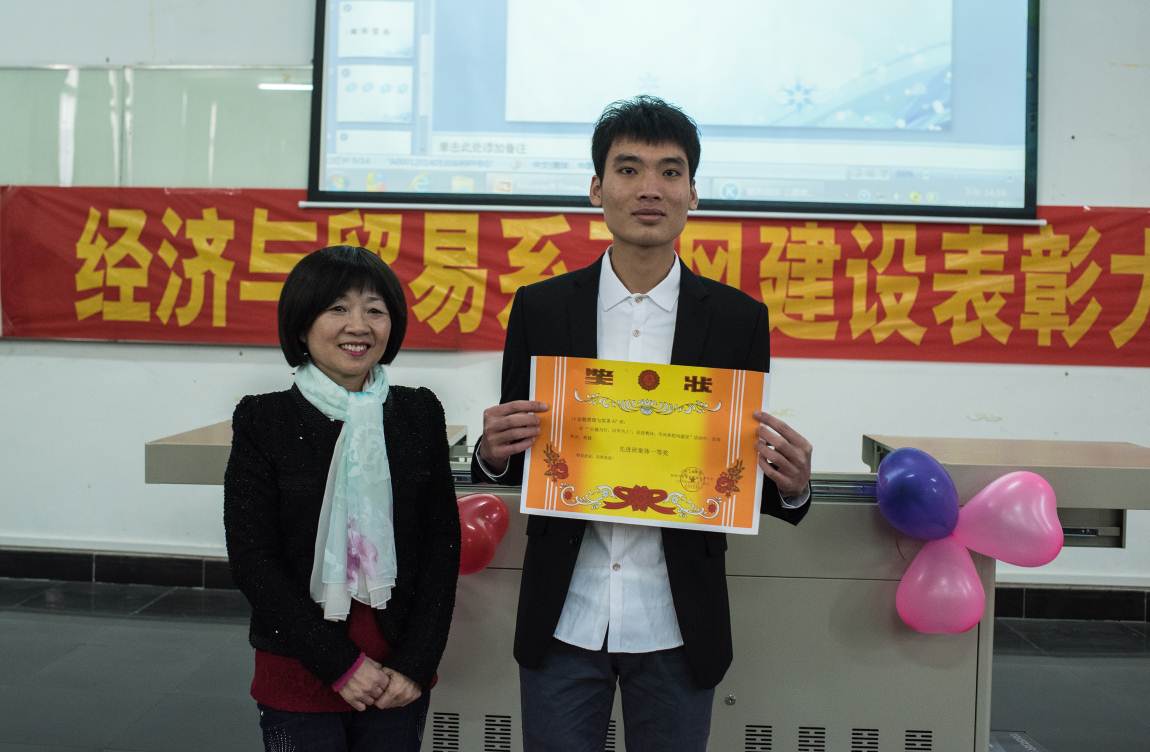 马超平主任为“先进班级体”三等奖班级代表颁奖