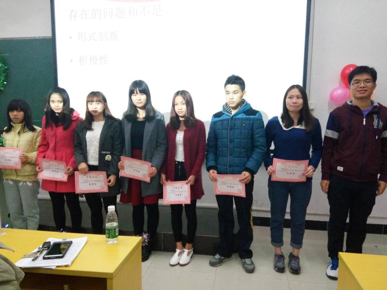 12月16日晚,我系在三水校区第一教学楼D302举行了征文颁奖典礼暨诚信感恩月总结大会。出席会议的嘉宾有马超平副主任,方韵诗老师,全佺老师,郑艺欣老师,张镇升老师和贺小茜老师。