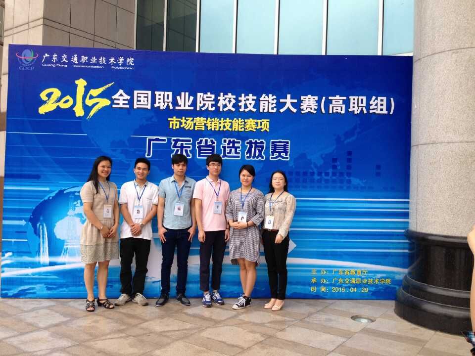 2015年4月29日,“2015年全国职业院校技能大赛高职组市场营销技能赛项广东省选拔赛”在广东交通职业技术学院进行。本次赛事有51支来自全省各高校的队伍参加,经过一天激烈、紧张的比赛,我院参赛队伍不负众望,勇获“三等奖”佳绩。本次参赛团队由马超平副主任领队,张晓英、张艳霞老师指导,石晓玉、邹永胜、曾远峰、傅钢濠同学比赛。