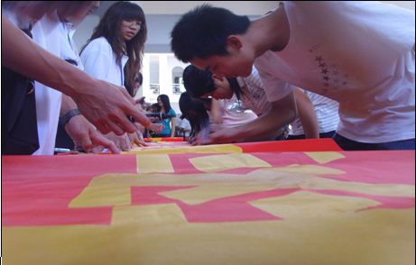 本网讯(记者/欧怡琦 摄影/黄家文)为进一步推动校风、学风诚信建设,我系于2009年10月26日下午4点30分,在教学楼大厅举行主题为“树诚信道德,扬和谐校风”的签名活动。