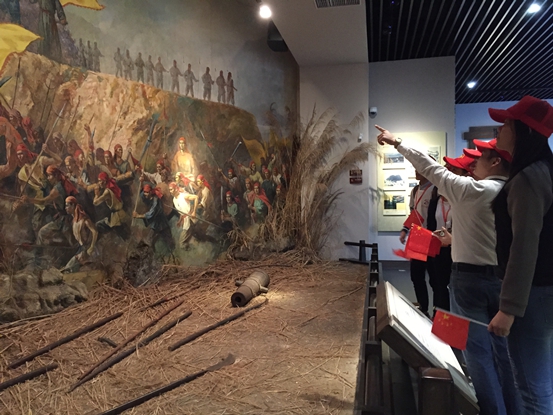 我系党务站成员在展厅模拟战场零距离感受当年战况,通过太平天国运动中一系列关键性事件,以及运动中重要人物的事迹,大家对农民起义先驱的英勇不屈和顽强斗争产生新的认识。