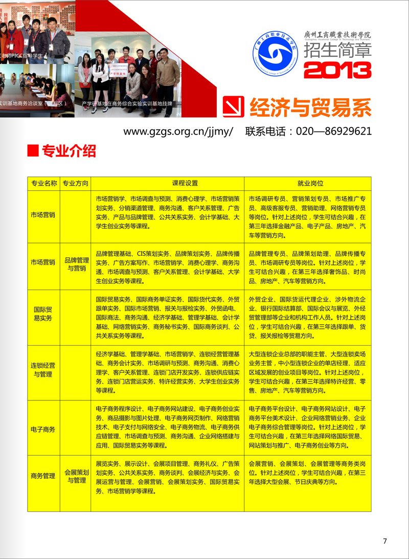 经济与贸易系市场营销专业是2012年广东省第一批省级高职教育重点培育建设专业,在广东省设市场营销专业的高职院校中唯一获此殊荣!经济与贸易系所有专业的学生大学3年全部在广州校区就读。